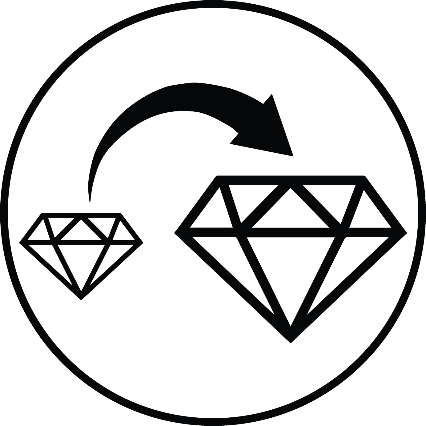 After initial purchase, you may trade in and trade up at any time for a larger size - and your original purchase price will be credited towards the total amount of your new jewelry.